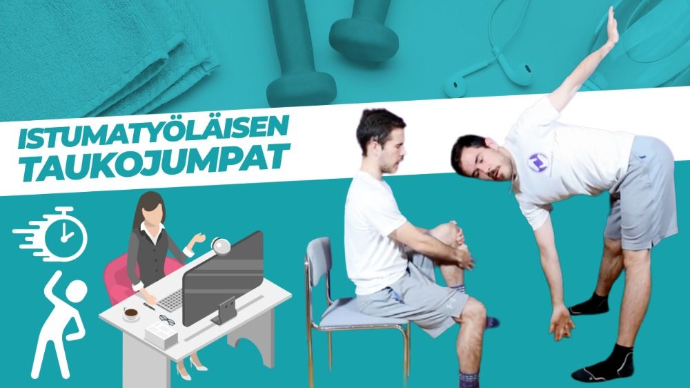 ⚡ Kurssi sisältää kolme erilaista taukojumppaa: energisoiva seisten, rauhoittava tuolissa ja venyttävä lattialla.